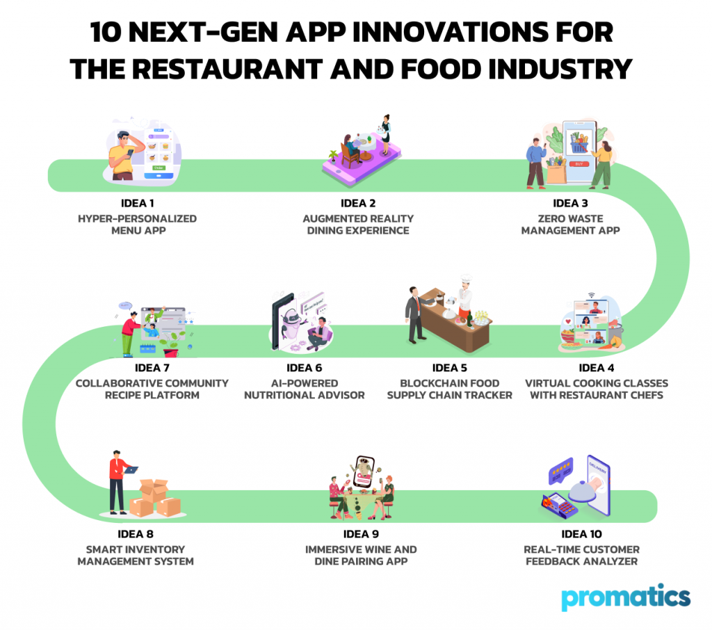 In conclusion, the future of the restaurant business and food industry is bright, with technology playing a pivotal role in shaping new and innovative experiences. From hyper-personalized menus and AR dining experiences to AI-powered nutritional advisors and blockchain supply chain trackers, the possibilities are endless. Promatics is well-equipped to help you navigate this technological landscape, turning your unique app ideas into reality and driving success in the competitive food industry.
