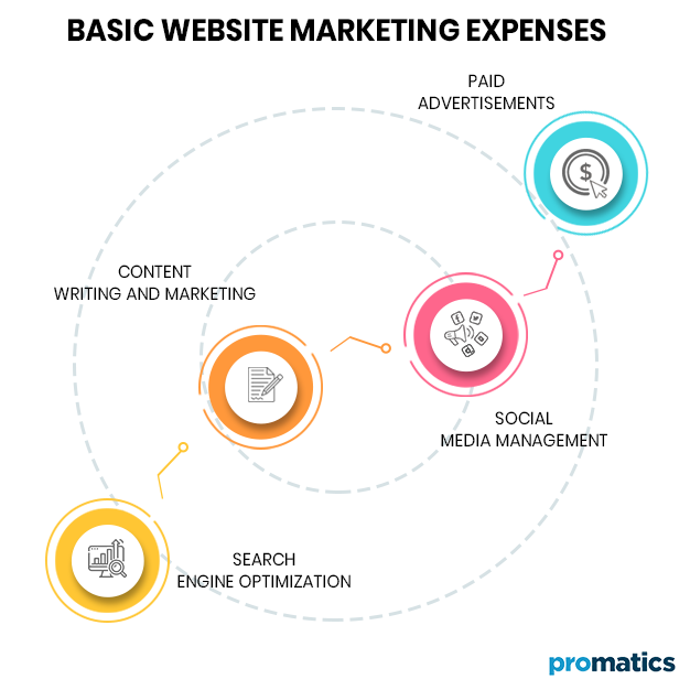 This expense includes all the costs such as domain name fee, design maintenance, and improvements, finding and removing bugs that affect the working of the website and also the web hosting charges.
