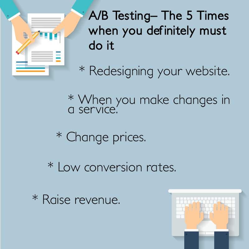 What is being proposed in this article are the 5 times when one certainly must go for A/B testing. The proposed 5 times of A/B testing are not elective. Actually they are indispensable.