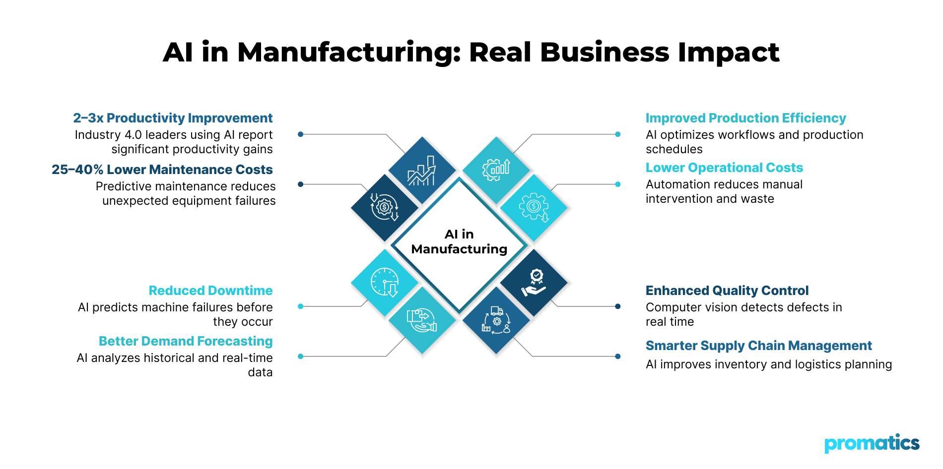 Collectively, these AI-driven capabilities help manufacturers operate more intelligently, accelerate processes, and lower operational costs while maintaining consistent performance