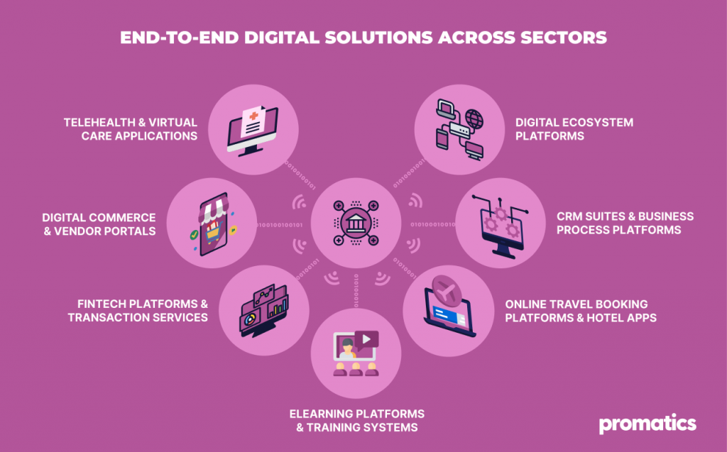 Healthcare digitization leads to better outcomes for the patients. Digital personalization in e-commerce is the primary driver of conversion rates. Fintech companies are cleaning up the payments and compliance side of the business. The educational sector has embraced digital learning, and the travel sector is upgrading guest experiences through automation and intelligent systems.