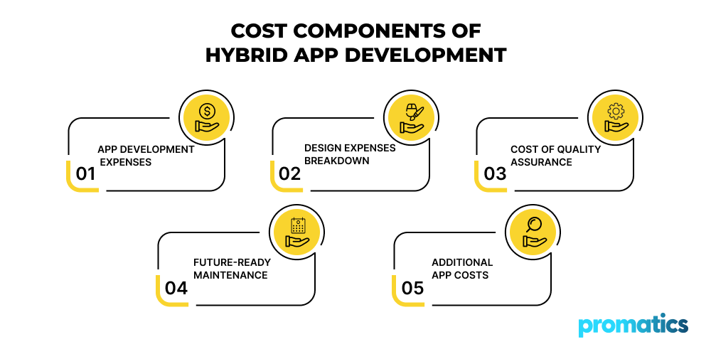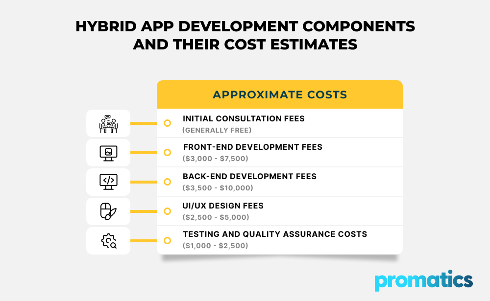 Here is a list of different components of a hybrid mobile app development and their approximate costs: