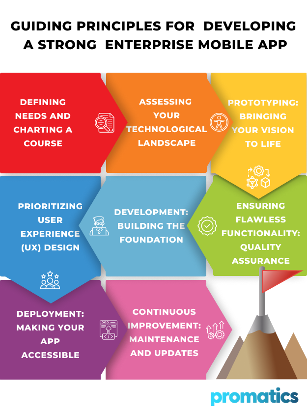 Developing a mobile app for your enterprise is an exciting journey, but navigating the process requires a clear roadmap. Here’s a breakdown of the eight key stages involved: