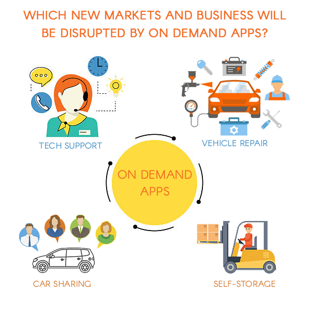 On-demand apps such as Uber, Airbnb, HomeAdvisor have the ability to disrupt new markets and businesses. We have identified a few new markets that are likely to be disrupted by the on-demand apps. Some of those are – vehicle repair and maintenance, car sharing, self-storage, tech support etc.