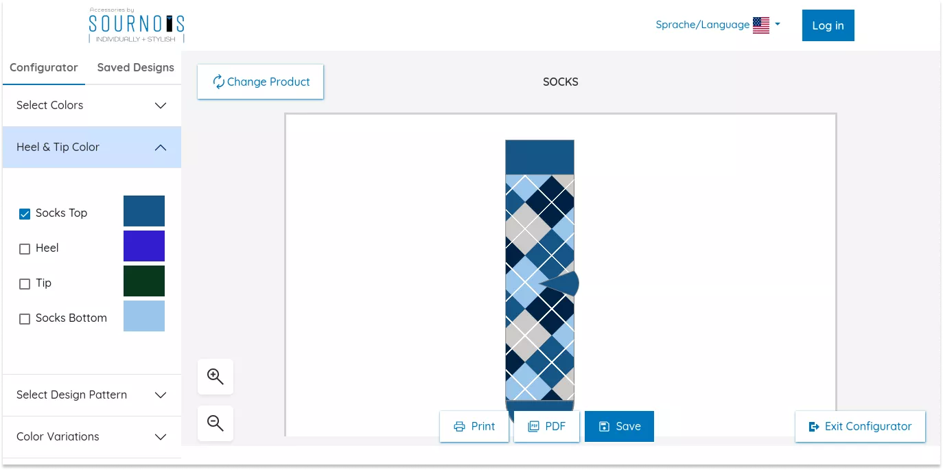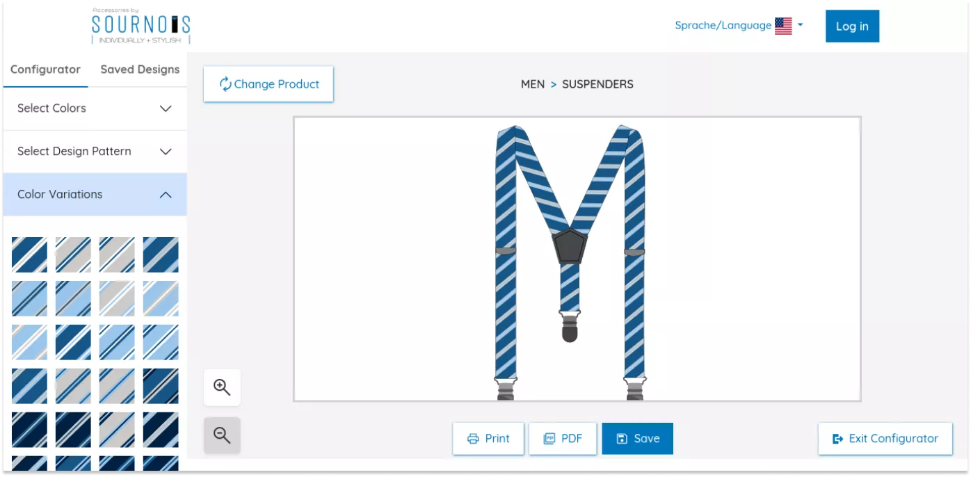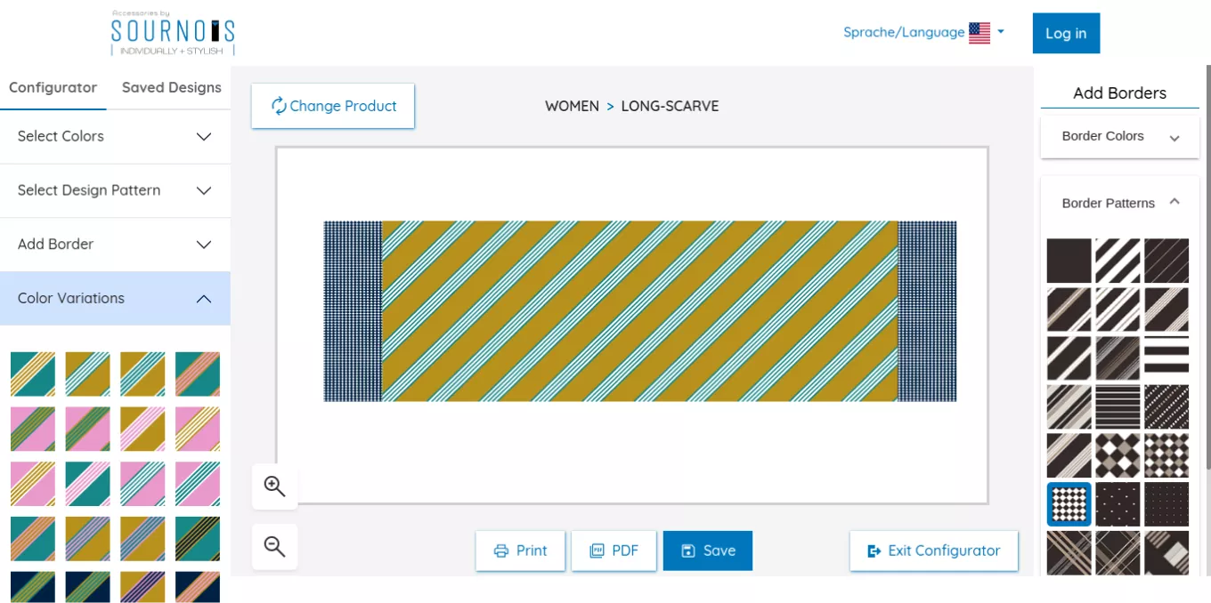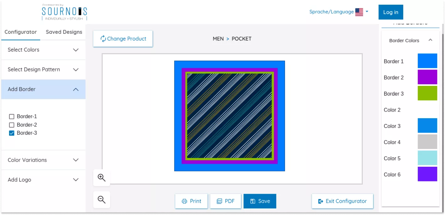 Sournois website is a comprehensive online platform where all the company’s offered clothing items are displayed, enabling customers to browse through the complete range of collections easily. With the integrated product configurator, customers can now personalize any product's design, pattern, and colors according to their preferences. Also, the availability of the website content in German and English languages provides a tailored experience for local customers while expanding the brand's reach internationally. Moreover, the website facilitates the process of obtaining price quotations for customized products. Customers can specify their desired customization options, such as design patterns and colors, and also select from a range of different cloth materials. This enables them to receive accurate pricing information tailored to their specific customization choices. Overall, the Sournois website provides customers with a seamless and interactive shopping experience, empowering them to explore, customize, and obtain price quotations for personalized products with ease and convenience.
