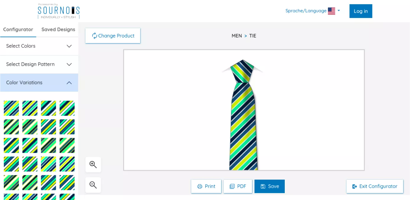 The Sournois Configurator integrates a pattern selector feature, allowing users to select patterns to further customize their products. This tool offers a diverse array of patterns, from classic to contemporary, giving customers the freedom to enhance their designs with additional visual elements. By combining patterns with color customization, users can achieve a high level of personalization, ensuring their products stand out.